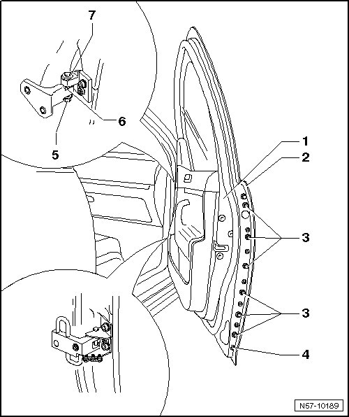 - Loosen bolts - 3 - and slide outer door panel - 2 -.