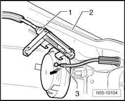 - Unclip release coupling - 1 - over headlight on drivers side of lock carrier - 2 -.