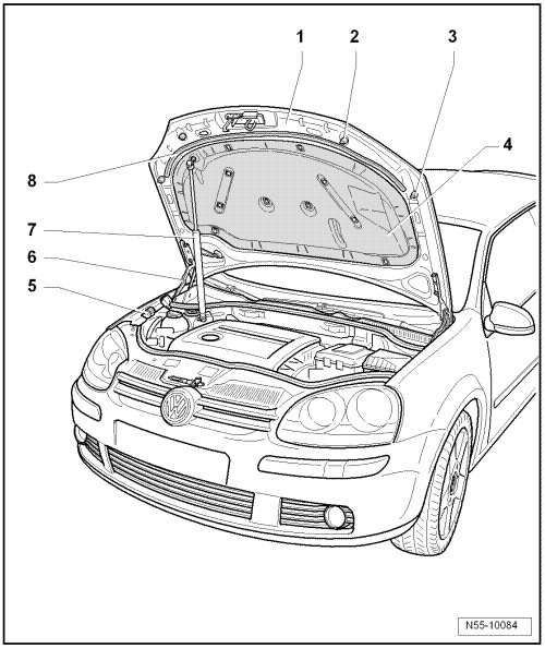 • Removing and Installing => [ Hood Hinge ] Service and Repair