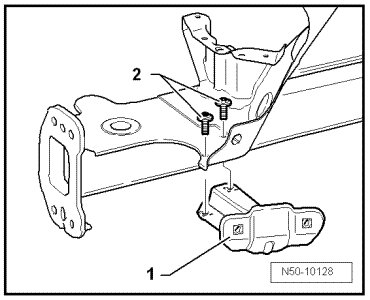 - Remove screws - 2 - and remove fender brace - 1 -.