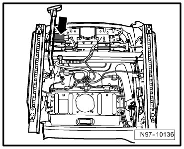 On left front seat frame -Arrow-