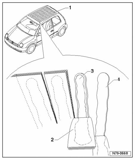 - Transport roof insulation/reinforcements into vehicle through rear lid and press on to roof over the entire surface.