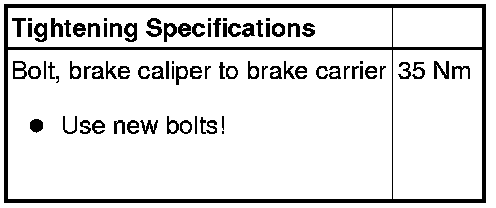 - Secure the brake caliper using the new self locking bolts.