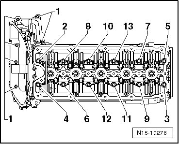 - Then tighten bolts - 13 - to 10 Nm.