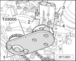 - Check that there are no shavings located on magnets of oil pump fixture T03005. Contact surfaces on crankshaft and chain sprocket must be clean.