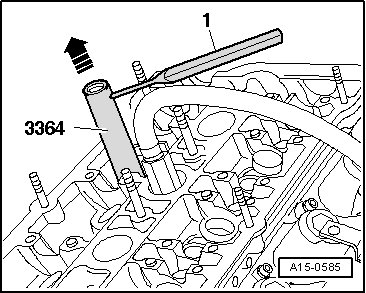 - Using the drift - 1 - as a lever, pull out the valve stem oil seal - arrow -.