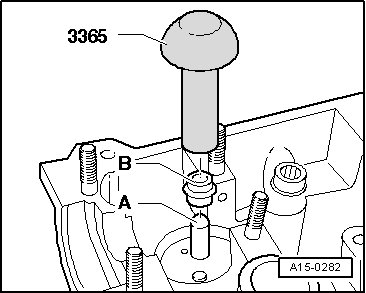 - Place the plastic sleeve - A - on the valve stem to prevent damage to the new valve stem oil seal - B -.