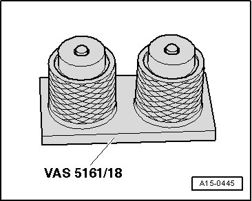 - Press down the (VAS 5161/8). At the same time, turn the knurled bolt on the (VAS 5161/8) clockwise until the points engage in the valve retainers.