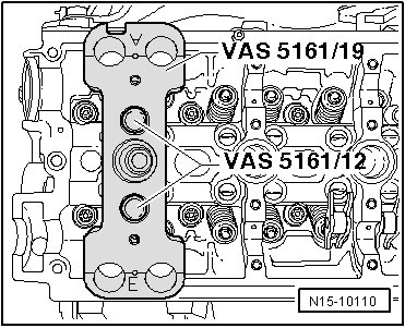- Secure the (VAS 5161/19B) using the (VAS 5161/12) to the cylinder head as shown.