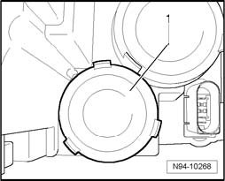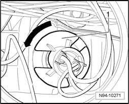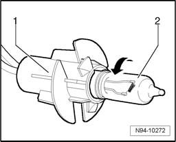 - Rotate lamp socket - 1 - with front turn signal lamp in - direction of arrow - and pull it, for as far as the cable lengths permit, out of reflector.