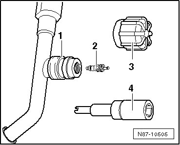 - Remove the valve set - 2 - (2.4 ± 0.2 Nm) with the suitable adapter - 4 - from the refrigerant line. Carefully hold the valve mount - 1 - firmly in place with a suitable tool.