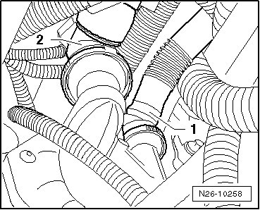 - Disconnect pressure tube - 1 - and intake tube - 2 -. To do so, compress the securing ring.