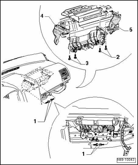 - If a passenger airbag housing cosists of plastic, screws - 2 - and - 3 - (9 Nm) should be inserted with locking compound D 197 300 A1.