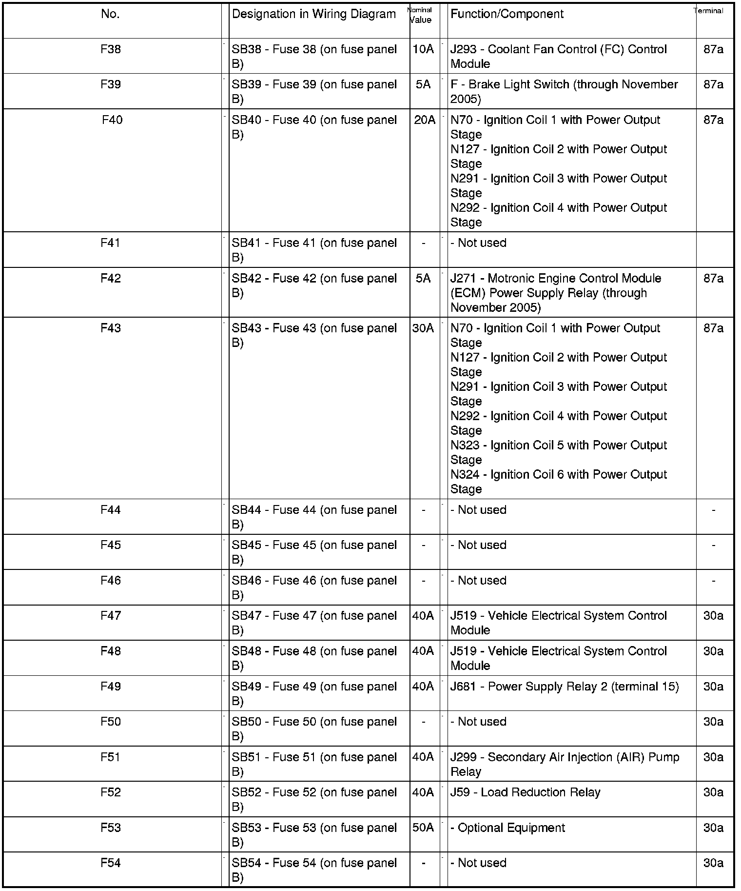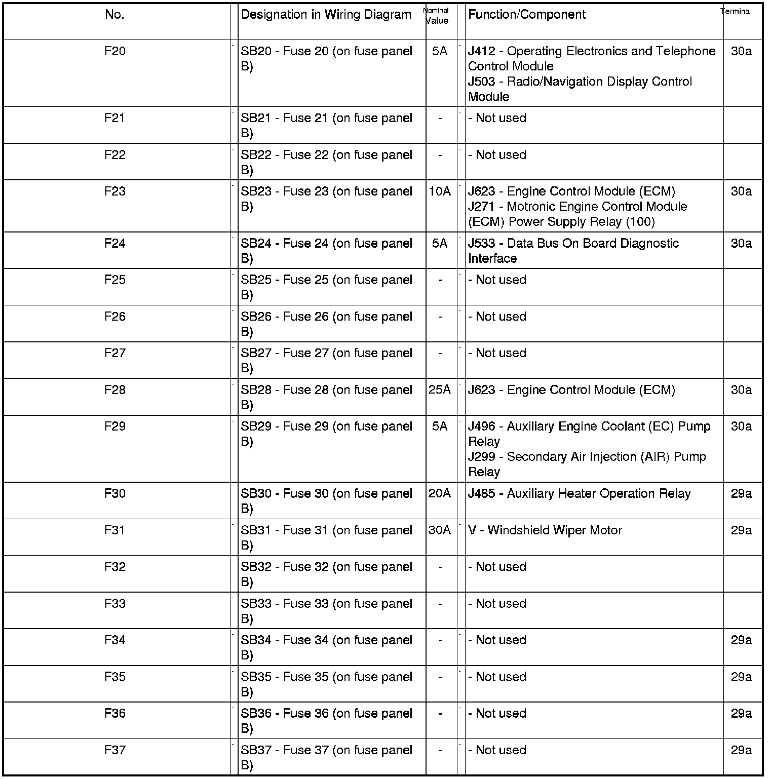 Fuse Arrangements Electronics Box High, from May 2005