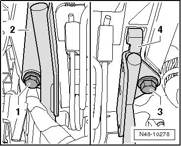 - Remove the bolt - 3 - and remove the brake pedal crash brace - 4 -.