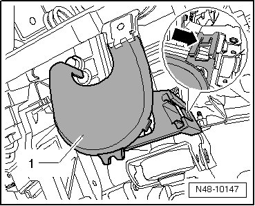 - Remove cable channel - 1 - beneath steering column. To do so, gently lift tabs - arrow - on both sides and pull cable channel out of guide on steering column.