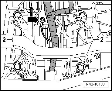 - Remove the bolt - 1 - and pull off universal joint - 2 - from steering gear.