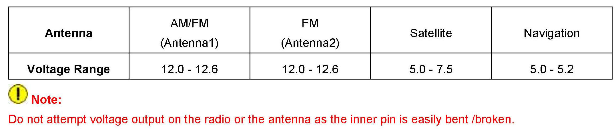 ^ Go to Diagnostic Checks with Digital Volt Meter to narrow down customer complaints that are considered to be antenna or coaxial cable related.