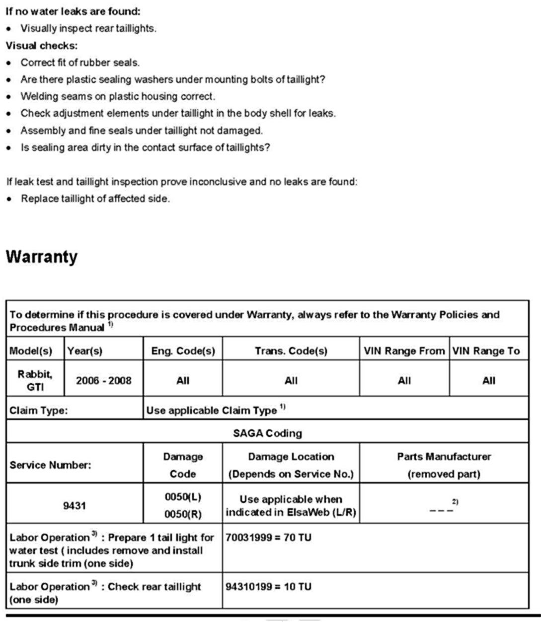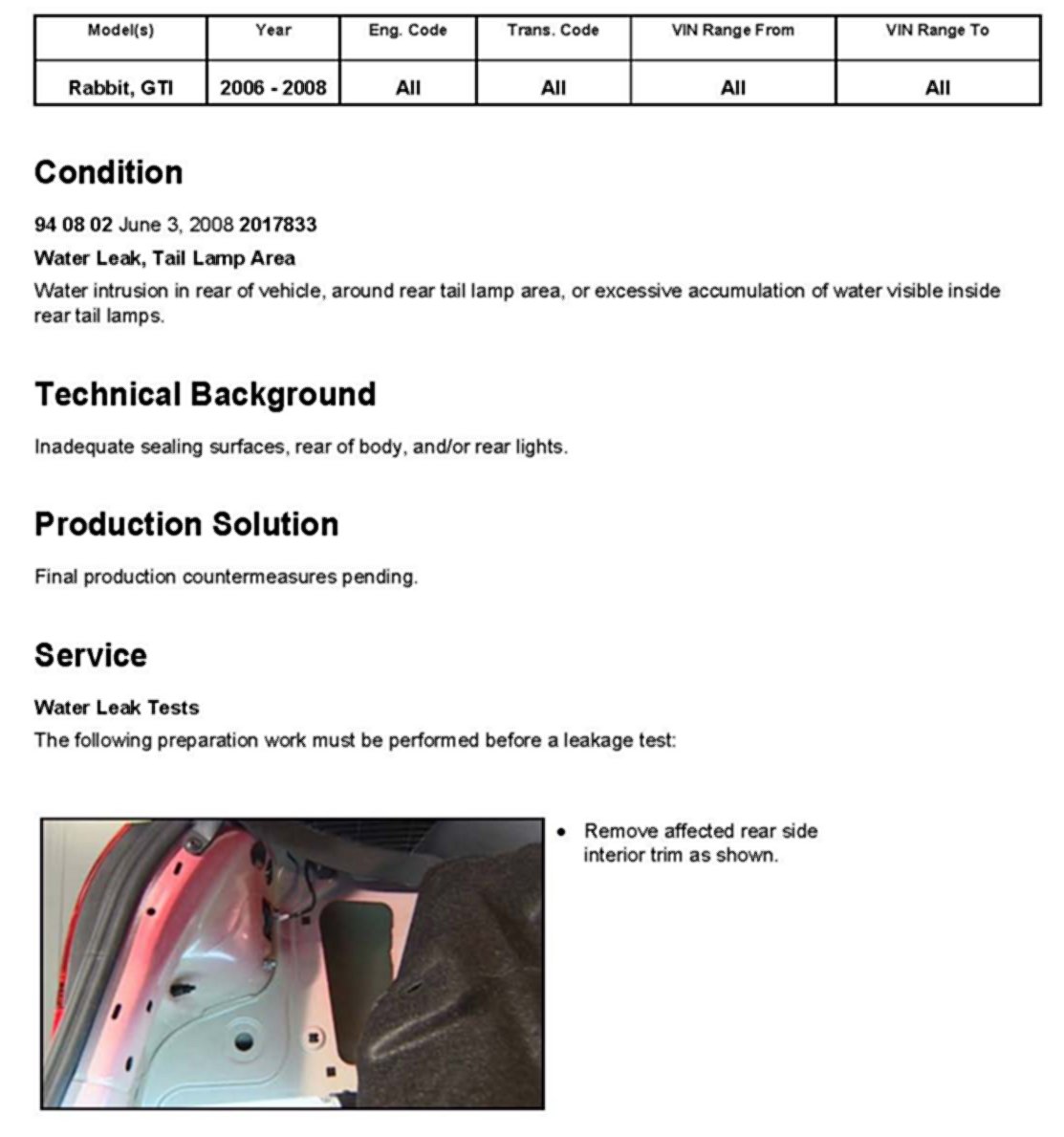 Body - Water Intrusion in Tail Lamp Area
