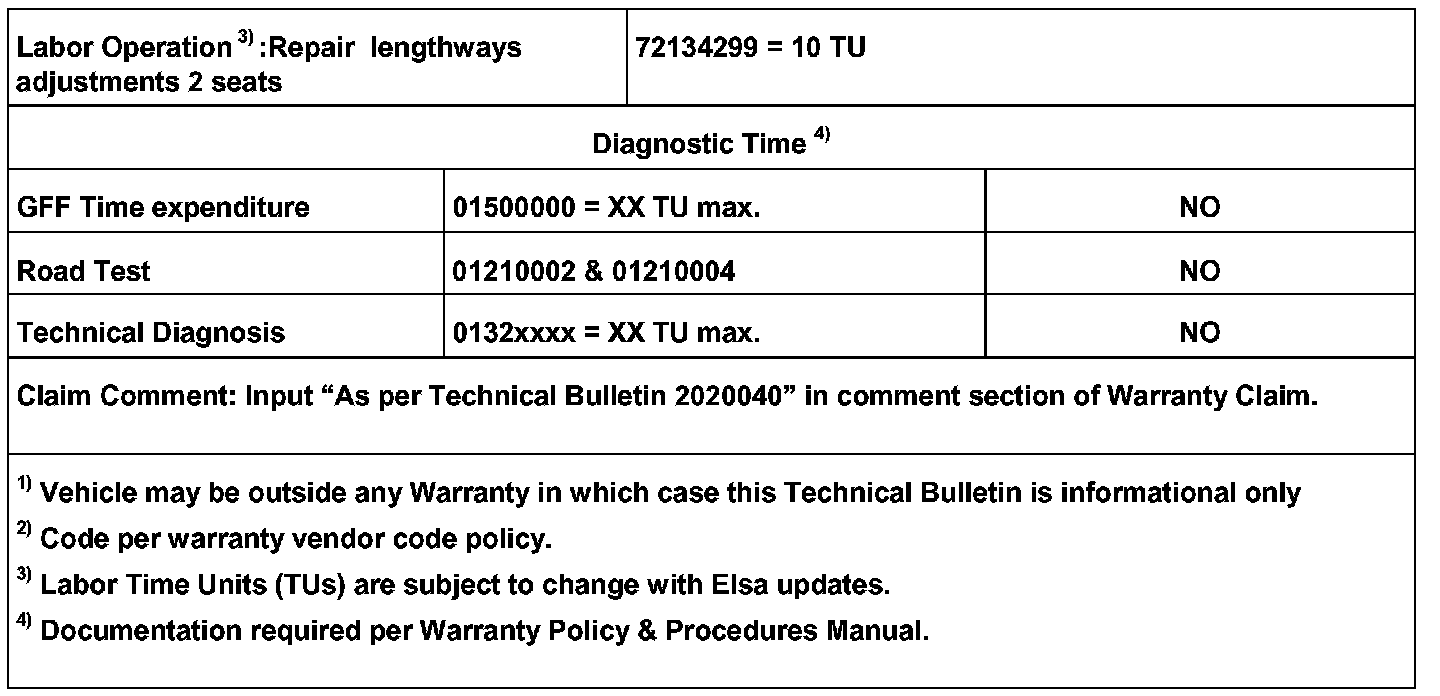 NOTE: DO NOT replace the seat or seat frame for this condition. Seats and seat frames replaced for this condition will be debited.