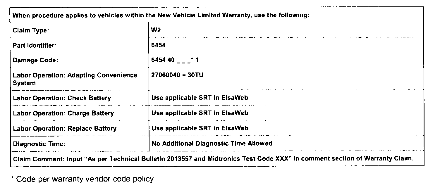 ^ Test the battery using the Midtronics MRC340V. If the battery needs charging, use Midtronics InCharge 940 (INC-940) tester/charger. Ensure that proper Midtronics test code is included with warranty claim.