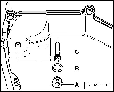 - Remove the overflow tube - C - and allow the remaining ATF to drain.