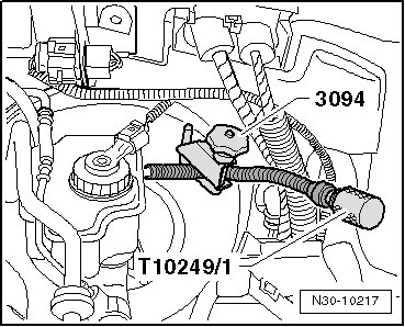 - Moreover, for disconnecting, seal the hose using sealing tool (T10249/1)(see the top illustration).