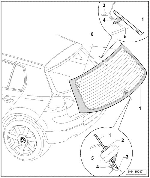 • Removing and Installing => [ Rear Window, Undamaged ] Rear Window, Undamaged