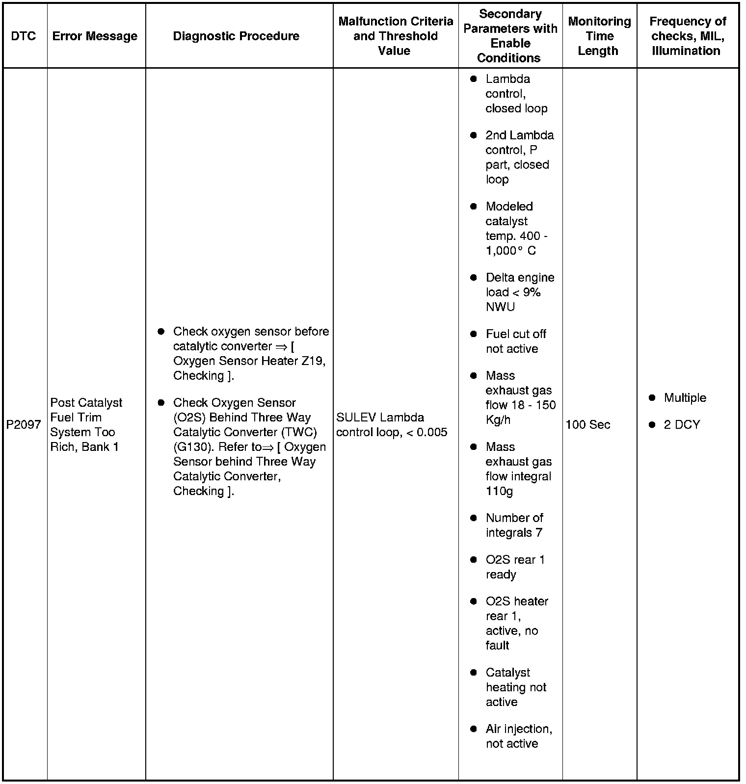 For additional monitor strategy information. Refer to the => Bosch Motronic MED 7.1.1 OBD System Strategy document.
