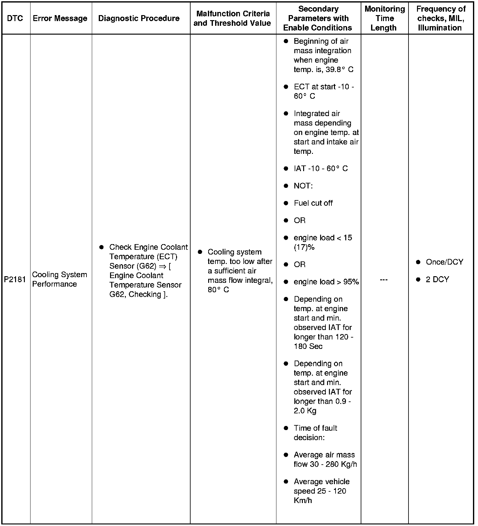 For additional monitor strategy information. Refer to the => Bosch Motronic MED 7.1.1 OBD System Strategy document.