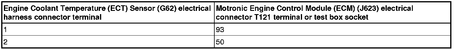 - Using a multimeter , check Engine Coolant Temperature (ECT) Sensor (G62) electrical connector terminals 1+2 for resistance.