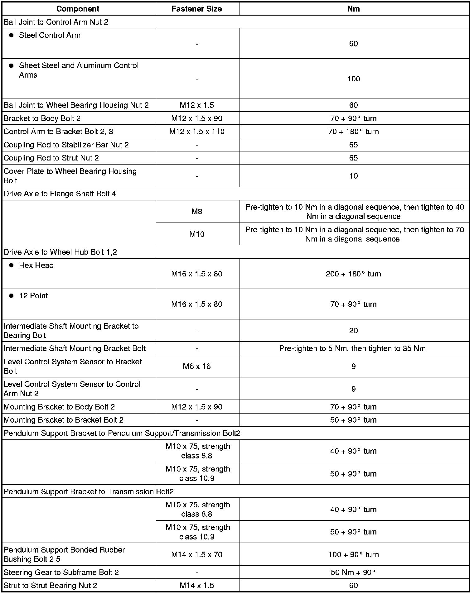 Fastener Tightening Specifications