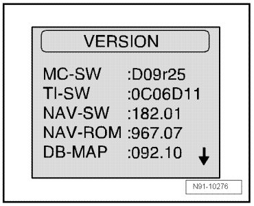 • Various software versions of navigation CD inserted are shown with the other values.