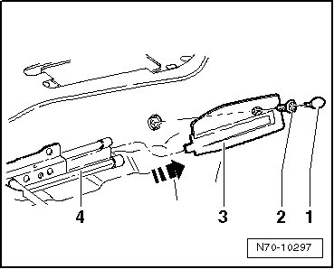 - Remove bolt - 1 - (1.5 Nm) and pull support cover - 2 - upward out of mounts in floor panel.
