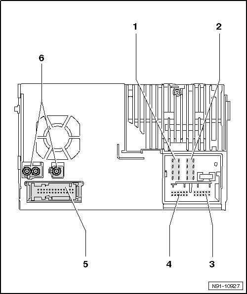 6 CD changer, data out (data exchange for CD changer control from radio navigation system to CD changer)
