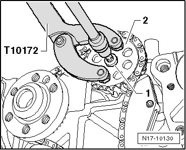 Hold the sprocket - 2 - in place using the (T10172).