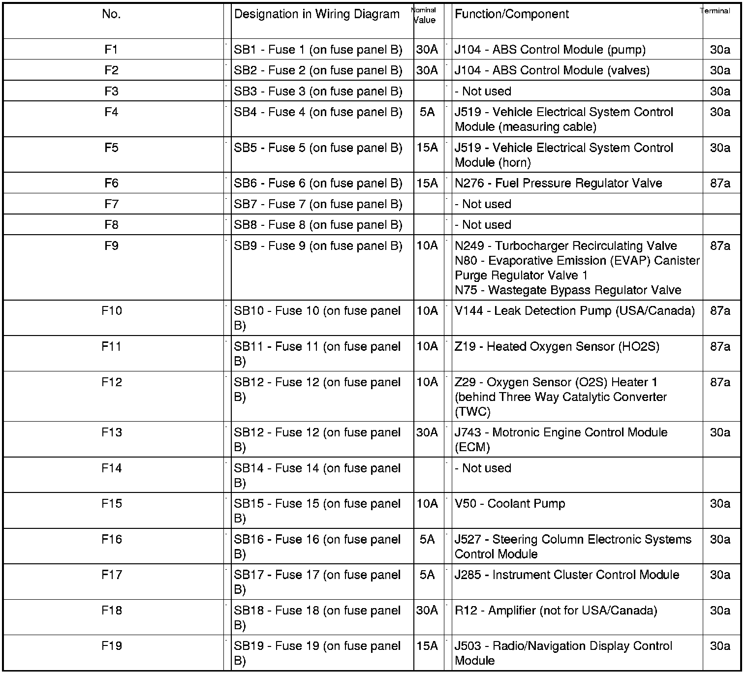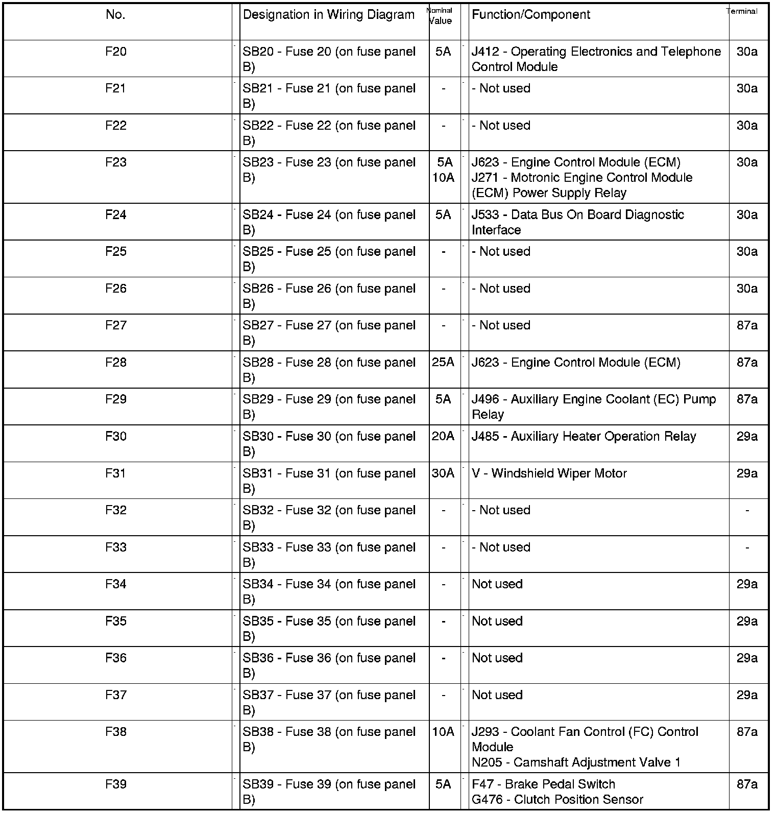 Fuse Arrangements Electronics Box High, From November 2005