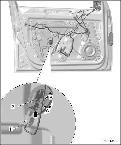 - Disconnect the wiring harness - 1 - from the driver side airbag crash sensor (G179) - 2 -.