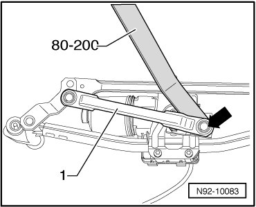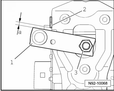 - Place motor crank - 1 - onto wiper motor shaft. Distance - a - to stop - 2 - must be 3 ± 1 mm.