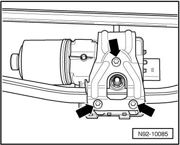 - Remove mounting bolts - arrows - and remove wiper motor with control module out of wiper frame.