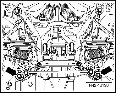 - Place the (V.A.G 1383 A) or the necessary mounts under the subframe.