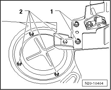 - Remove the cover nuts - 1 -. Remove the backrest bearing - 2 - or bracket if necessary.
