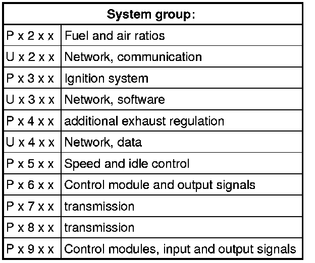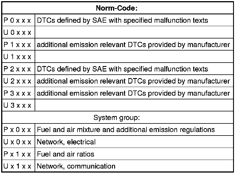 The DTC always consists of a 5-digit alpha-numeric value with the following meaning: