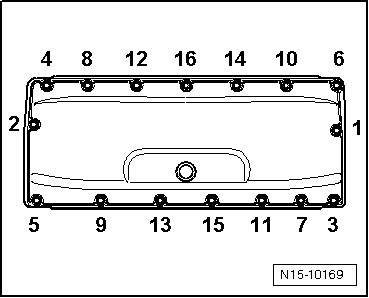 - Tighten the bolts - 1 through 16 - in the sequence shown to 10 Nm.