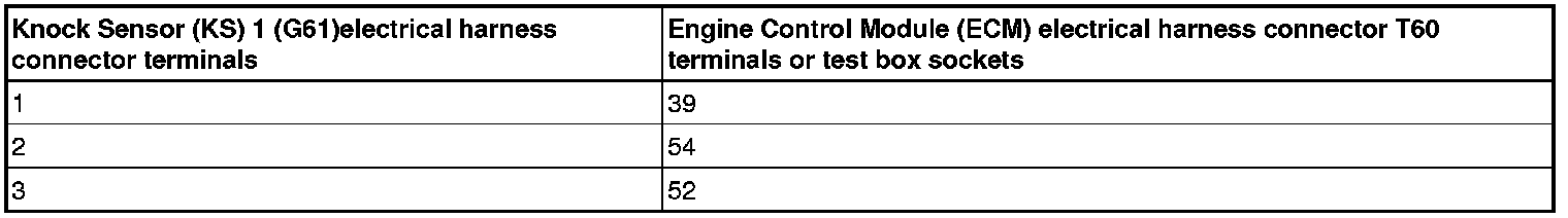 - Using a multimeter, Check the knock sensor electrical harness connectors to the Engine Control Module (ECM) (J623) electrical harness connector T60 for an open circuit.