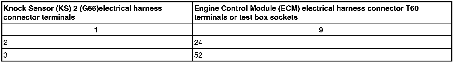 - Disconnect Knock Sensor (KS) 1 (G61) electrical harness connector- 1 - or Knock Sensor (KS) 2 (G66) electrical harness connector - 2 -.