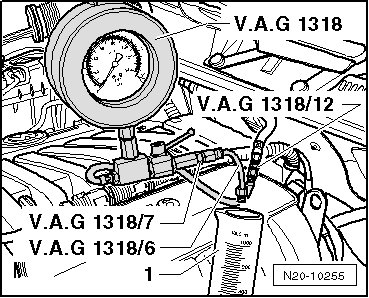 - Watch the pressure decrease on the (V.A.G 1318). After 10 minutes the pressure must not drop below a 4.0 bar decrease.