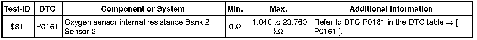- If any of components or systems fail to meet the specified values. Refer to Diagnostic "Mode 03: Interrogating Fault Memory" to check for stored DTC's or the corresponding diagnostic repair procedure => [ Diagnostic Mode 03 - Read DTC Memory ].