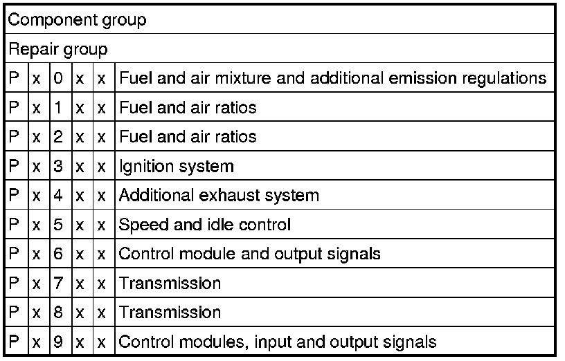 The DTCs are sorted by SAE code with the DTC tables consisting of a 5 digit alpha numeric value.
