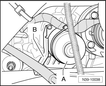 The differential lock motor (V304) - A - is located in front of the left flange shaft on the rear final drive.